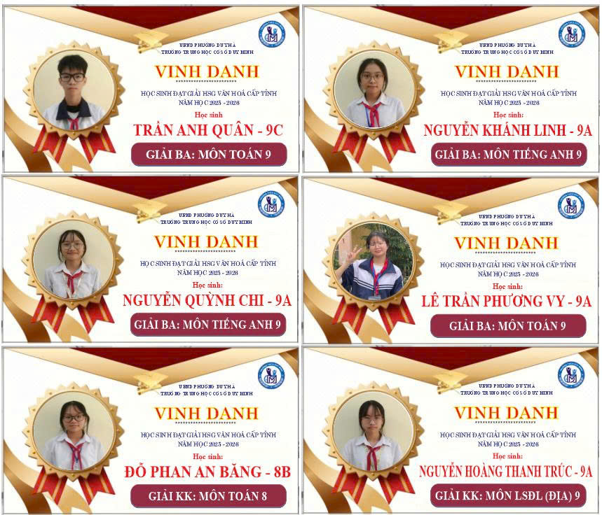 Từ những “trái ngọt” đầu mùa đầy ý nghĩa này, tin rằng thầy và trò Trường THCS Duy Minh sẽ tiếp tục nuôi dưỡng khát vọng, bền bỉ chinh phục những đỉnh cao mới, góp phần viết tiếp truyền thống hiếu học và khẳng định vị thế của nhà trường trong hành trình đổi mới giáo dục.